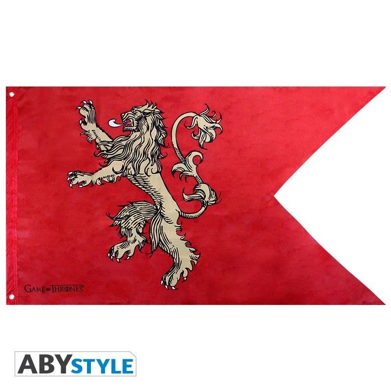 Game of Thrones Bannière Lannister. Splendide bannière de la maison Lannister. Ce drapeau represente l’emblème Lion de la maison Lannister de Game of Thrones.